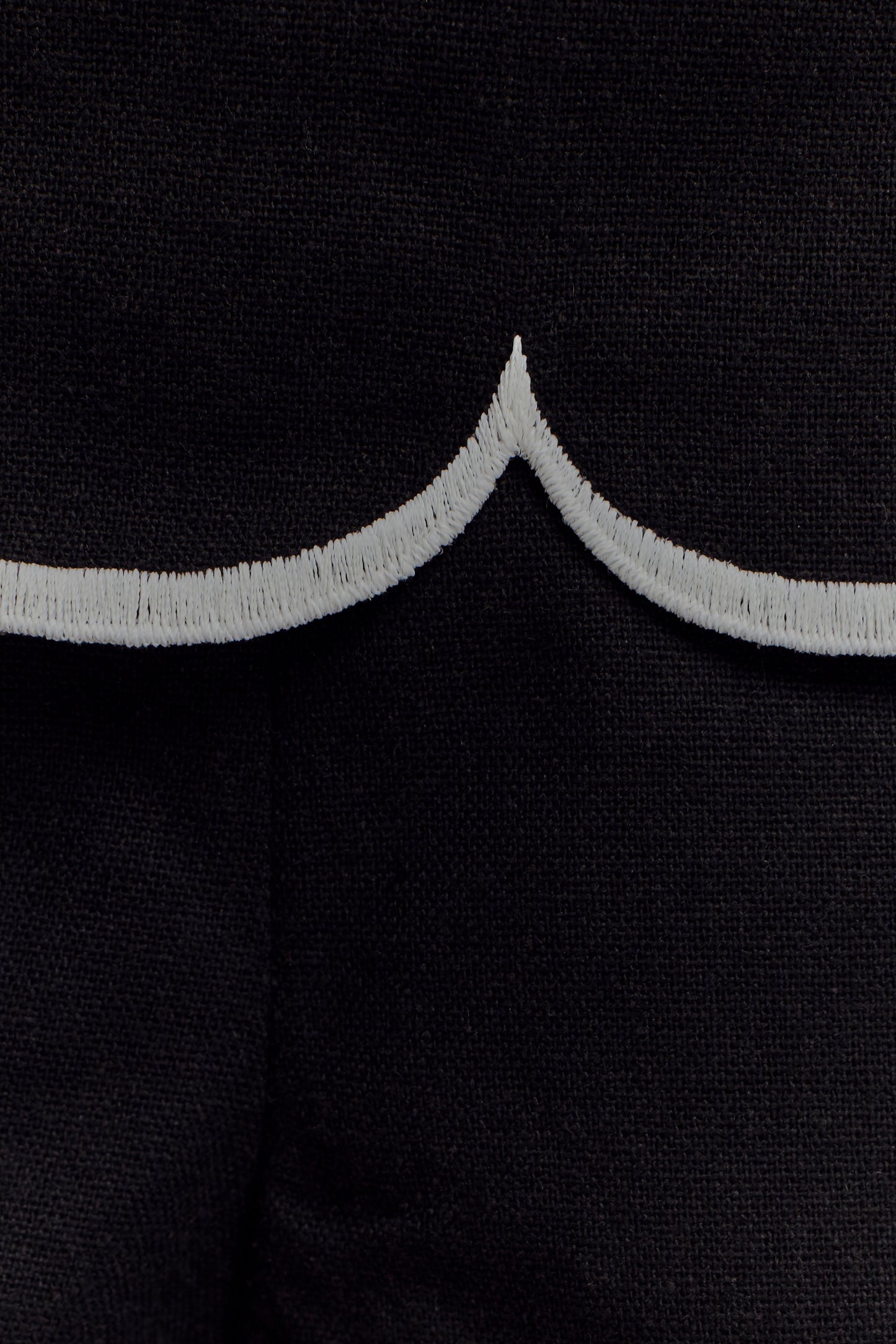 The JUDITH Scallop Shorts bring a feminine twist to classic tailoring. Designed with a flattering high-waisted fit and mini length, these shorts feature a scalloped hem highlighted by contrast white embroidery stitching for a refined finish. A fly front with bar tab fastening ensures a clean, structured look. Pair with the Judith Strapless Scallop Top for a matching set that blends charm, confidence, and effortless summer styling.