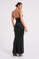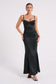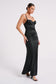 KATYA is a beauty you’d instantly fall in love with in a glance. This dashing dress is made from a lustrous, sheen black fabric, cut to perfection. It features a cupped bust, defining your décolletage, and is secured with an invisible side zipper for a seamless fit. The shoulder straps are flat and adjustable, allowing you to customise the dress to your desired fit. The bodycon fit flows into a fishtail hem shape, creating the illusion of a smaller waist and longer body.