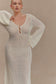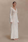 The KAYLEIGH Crochet Maxi Dress is designed to captivate in every detail. Featuring a deep V-neckline and rounded V-back, this maxi is elevated with two front keyhole cut-outs secured by signature MESHKI gold bar hardware. Long flared sleeves and a raw, floor-length hem create dramatic movement, while the sheer crochet knit offers a soft, breathable finish. Crafted in a cotton-acrylic blend, it delivers effortless elegance with a touch of statement shine. Whether for festivals, holiday escapes, or sunset dinners, this dress is made for standout moments.