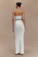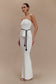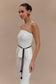 The KEATON Strapless Rose Tie Knit Top is the epitome of effortless sophistication, featuring a flattering strapless neckline with an elastic finish for a secure, comfortable fit. The longline silhouette elongates your frame, while the split detail at the hem adds a modern touch of allure. A waist tie adorned with delicate floral trim creates a beautiful accent that cinches your shape for a feminine finish. Unlined for a lightweight, breathable feel, this piece pairs perfectly with the Keaton Fishtail Knit Maxi Skirt for a chic, coordinated look that exudes timeless elegance.