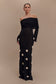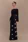 Kiki Off Shoulder Knit Rose Maxi Dress - Black/White