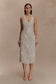 The LENORE Silk Lace Halter Midi Dress blends airy elegance with intricate detail. Featuring a halter neckline and a relaxed fit, this silhouette skims the body with understated ease. Appliqué lace details add texture and artistry, while the separate slip dress lining offers versatility and comfort beneath the sheer outer layer. Fully lined and finished with an invisible back zip, this dress is a timeless choice for elevated occasions where soft romance takes centre stage.