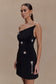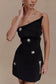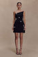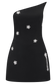 The LIVA Strapless Diamante Floral Trim Mini Dress is a statement piece that fuses playful charm with refined detailing. Designed with an asymmetric strapless neckline, it frames the shoulders beautifully while creating a clean, modern shape. Beaded floral trims cascade along the front, catching the light for subtle sparkle. Fully lined and finished with an invisible zip for a smooth fit, this dress falls to a mini length — perfect for evening occasions that call for effortless glamour.