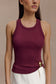 Ribbed Sleeveless Top With Hardware - Burgundy