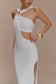 The LOTTIE Slinky Maxi Dress With Split is a modern statement in asymmetry. Designed with a gathered neckline and sculptural hardware detail, LOTTIE flatters the frame with subtle waist cut-outs and a fluid side seam split. The partially lined silhouette clings in all the right places, offering just enough coverage while keeping the look sleek and sultry. Perfect for nights that call for confidence and impact.
