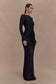 The LOUISA Long Sleeve Slinky Maxi Dress is an elegant statement in modern minimalism. Designed with a graceful boat neckline and a dramatic low V-back, this fully lined silhouette hugs the body with a sleek, fitted shape. Long sleeves and gathered shoulder details add soft volume, while a ruched hip brings subtle texture and movement. Finished in a floor-grazing maxi length, this dress is made for evenings that call for quiet drama and effortless sophistication.