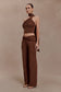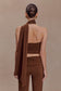 The LYDIA Slinky Asymmetrical Halter Top offers a modern, sculpted take on evening minimalism. Designed with a one-shoulder neck tie, it creates a striking neckline that frames the décolletage with effortless allure. Gathered bust detailing adds soft dimension, while the open back enhances the silhouette with a confident reveal. Fully lined and cut with an asymmetric hem, this fitted bodycon top contours the frame in slinky fabrication — sleek, polished, and made for elevated moments.