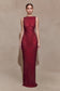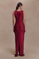 The MAGNOLIA Sleeveless Diamante Maxi Dress is designed for understated glamour. Featuring a refined boat neckline and low underarm cut for a modern edge, it skims the body in a sculpted bodycon fit. Fully lined for comfort and finished with a subtle back leg opening, this maxi-length dress elongates the silhouette while maintaining a minimalist elegance. Refined yet striking, this dress embodies effortless sophistication with a touch of shine.