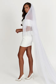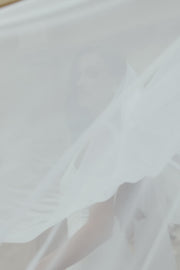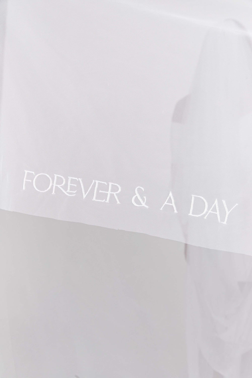 The finishing touch to your bridal look, this delicate ethereal veil is 300cm long and features a hidden comb clip that makes it easy to attach. We love the romance of a secret message and have included an intricate ‘Forever & A Day’ embroidery at the hem for a hint of playfulness for those paying attention. Crafted in the finest quality, MARGARETA is soft and lightweight for a romantic silhouette that complements any bridal aesthetic.