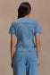 The MARGE Fitted Denim Short Sleeve Top is a modern essential with structured detailing. Featuring a round neckline and a functional button-front closure, it’s shaped with front and back yokes for definition. Short sleeves are finished with cuffed hems, while front pockets and a rounded hemline balance utility with a refined edge. Crafted in denim and cut to a fitted silhouette, this top is versatile enough to wear solo or layered with tailoring.