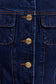 The MARGE Fitted Denim Short Sleeve Top is a modern essential with structured detailing. Featuring a round neckline and a functional button-front closure, it’s shaped with front and back yokes for definition. Short sleeves are finished with cuffed hems, while front pockets and a rounded hemline balance utility with a refined edge. Crafted in denim and cut to a fitted silhouette, this top is versatile enough to wear solo or layered with tailoring.