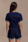 Fitted Denim Short Sleeve Top - Indigo Blue