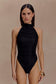 The MATILDA Ruched Mesh Bodysuit is a sleek layering piece designed with subtle texture and modern edge. Featuring a high neckline and sleeveless cut, it’s detailed with soft gathering through the bodice for a flattering effect. Fully lined for comfort, it fastens with a back neckline button closure and a snap gusset for ease of wear. Streamlined and fitted, this bodysuit is the perfect balance of everyday versatility and after-dark polish.