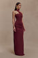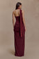 Slinky And Mesh Maxi Dress With Scarf - Burgundy