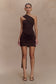 Mattea Slinky And Mesh Mini Dress With Scarf - Dark Chocolate