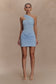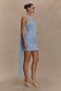 Slinky And Mesh Mini Dress With Scarf - Powder Blue