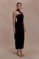 The MATTEA Velvet Midi Dress With Scarf is designed to captivate through rich texture and elegant structure. Featuring a strapless sweetheart neckline and a corset-style bodice, it shapes and defines the silhouette with precision. A softly draped overlay skirt with pleats at the side seams enhances movement, while the attached scarf — cascading from the underarm — adds a touch of fluid sophistication. Fully lined for comfort and finished with an invisible zip, this midi-length dress brings modern glamour to timeless eveningwear.