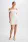The MELINA Slinky Off Shoulder Mini Dress is a captivating blend of sophistication and allure. Its off-the-shoulder design exudes effortless elegance, while the centre front twist detail adds a touch of intrigue. With a ruched overlay enhancing the silhouette and providing texture, this dress is as flattering as it is stylish. Lined for comfort and quality, it ensures a luxurious feel with every wear. The bodycon fit hugs your curves, while the mini length adds a hint of flirtatious charm. Featuring pointed skirt hem paneling and pleated lower skirt detail, this dress boasts intricate craftsmanship and modern flair. Whether you're hitting the dance floor or attending a special occasion, the Melina Off Shoulder Mini Dress is sure to make a statement.