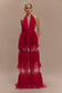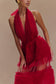 Mesh Ruffle Halter Maxi Dress - Red