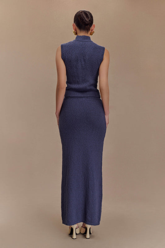 The MOIRA Boucle Maxi Skirt is a sophisticated and stylish addition to any wardrobe. Designed with a mid-rise and an elastic waist, this skirt offers a comfortable and flattering fit. The straight silhouette enhances its classic appeal, while the boucle knit fabric adds a touch of texture and elegance. Unlined for a lightweight feel, this skirt is perfect for both casual and dressy occasions. Its timeless design makes it a versatile piece that can be easily dressed up or down, ensuring it becomes a staple in your wardrobe. Pair with the Azalea Sleeveless Knit Top to complete the look.