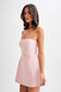 The NEEKA is a strapless mini dress with a low sweetheart neckline and flared skirt. Three beautiful contrast bows are lined up at the centre back, adding visual texture and a touch of feminine charm. The back itself is low with a deep V-shaped neckline. Airy tulle underlayers add playful volume while the tucked waist accentuates a slender, curvy silhouette. Flatteringly feminine, NEEKA is the perfect blend of childish whimsy and classical charm. Complete the look with solid statement jewellery like Hilda Drop Earrings.