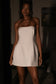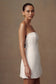 The NEEKA is a strapless mini dress with a low sweetheart neckline and flared skirt. Three beautiful contrast bows are lined up at the centre back, adding visual texture and a touch of feminine charm. The back itself is low with a deep V-shaped neckline. Airy tulle underlayers add playful volume while the tucked waist accentuates a slender, curvy silhouette. Flatteringly feminine, NEEKA is the perfect blend of childish whimsy and classical charm. Complete the look with solid statement jewellery like Hilda Drop Earrings.