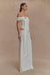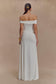 The OLIVER Slinky Maxi Dress is an elevated take on occasion dressing with just the right amount of edge. Designed with an off-the-shoulder neckline and gathered shoulder overlay, this silhouette flatters with a fitted bodice and soft A-line drape. Front hardware and sash detailing create a modern focal point, while the hip cutout and cascading skirt bring bold femininity to life. Finished in a slinky fabrication with a maxi length, this dress is your go-to for making an unforgettable entrance.