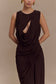 Make a statement in the ORIA Chiffon Maxi Dress, where ethereal design meets modern allure. This elegant piece features an asymmetrical neckline with a bold cutout and a draped neckline and waist detail that flatters your silhouette. The open back, secured by a delicate back neck tie, adds a touch of drama, while the flowing chiffon maxi skirt creates a graceful finish. Perfect for formal occasions or evening soirées, this dress ensures you captivate from every angle.