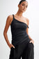 The PALMIRA Slinky Asymmetric Sleeveless Top combines modern elegance with bold design elements. Featuring an asymmetrical neckline and a twist strap detail, this top offers a dynamic silhouette with its drop shoulder and asymmetrical hem. The bodycon fit enhances the sleek, contoured look, while the lining ensures comfort. Ideal for making a stylish statement, the Palmira Top embodies contemporary sophistication in every detail.