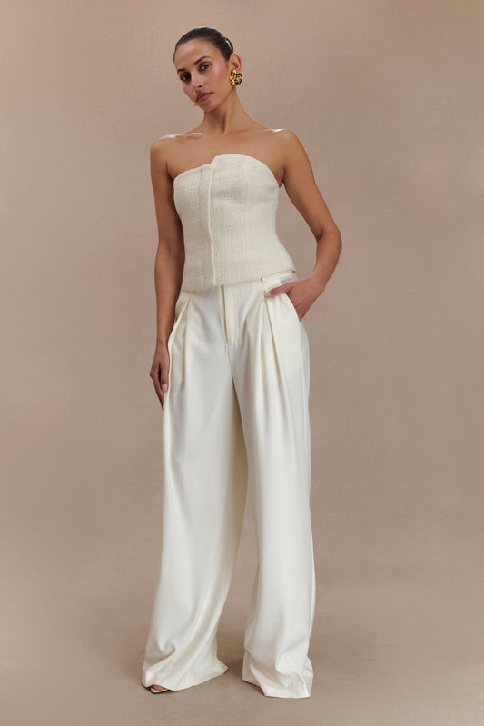 Elevate your summer wardrobe with the PARKER Boucle Shorts, where comfort meets chic sophistication. These high-waisted shorts are crafted from soft boucle fabrication, giving them a textured and stylish appeal. The centre front zip closure ensures a secure fit, while the side pockets add practicality without compromising on style. Perfect for dressing up with the Parker Boucle Strapless Asymmetric Top or keeping it casual with a simple tee, these shorts are a versatile addition that exudes effortless elegance.