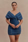 The PASCALE Off Shoulder Denim White Dress brings a fresh take to feminine tailoring. Designed with a Bardot neckline and crossover detail at the front and back, this mini silhouette combines sculptural shape with flattering pleat accents through the bodice. A fitted waist enhances the form, while the mini length keeps it modern and playful. Finished with a back zip for a seamless fit, this dress is your go-to for elevated denim with a romantic twist.