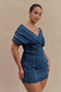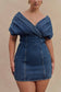 Off Shoulder Denim Mini Dress - Washed Dark Blue
