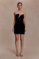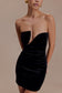 The PAULINA Velvet Strapless Mini Dress is a refined statement piece designed to contour and captivate. Featuring an asymmetric neckline and internal wiring for structure, it frames the décolletage with precision while maintaining a clean, strapless silhouette. Crafted from plush velvet for a soft, elevated finish, it’s fitted through the body in a sleek bodycon cut. Finished with a back zipper closure and a mini length, this dress blends sophistication with sensual simplicity.