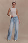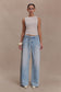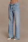 Mid Rise Straight Leg Tie Jeans - Washed Light Blue