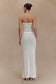 Introducing the PHOEBE Knit Maxi Skirt, a stunning piece that effortlessly combines comfort and sophistication. This high-waisted skirt features a flattering fishtail hem shape that gracefully drapes around your silhouette, creating an elegant, flowing effect. The elastic waist ensures a comfortable and secure fit, while the sheer knit fabrication adds a touch of allure. Lined with soft mesh for added coverage, this skirt is perfect for both casual outings and dressier occasions. Pair it with the Phoebe Strapless Tie Knit Top for a chic, coordinated look that showcases your style.