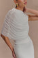 The PRUEDANCE Slinky Draped Top With Mesh Overlay blends modern sophistication with graceful movement. Featuring a high neckline and sculpted bodice, this fully lined silhouette is elevated by a single draped mesh shoulder panel that cascades with effortless fluidity. A subtle back keyhole and centre back button closure add refined detail, while the fitted shape ensures a sleek finish. A striking choice for elevated evenings or contemporary layering.