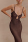 Metallic Knit Fringe Midi Dress - Dark Chocolate