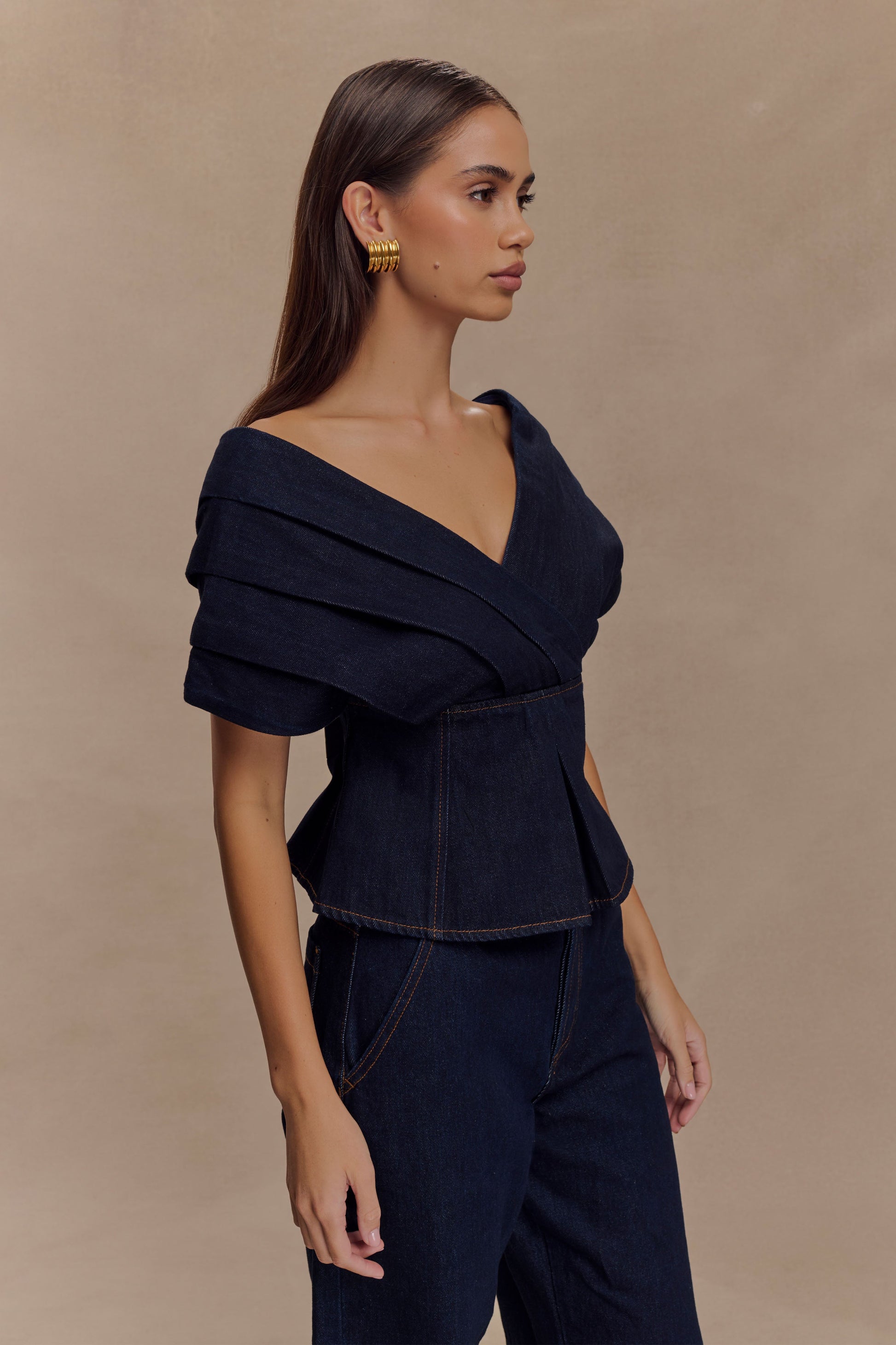 The RAYNE Off Shoulder Denim Top brings a relaxed elegance to structured dressing. Featuring a flattering V neckline and off-the-shoulder silhouette, this top is designed with an adjustable back strap for a custom fit. The relaxed shape balances effortlessly with its tailored finish, while the side zip and full lining ensure comfort and ease. Pair with the Rayne Wide Leg Denim Jeans for a double denim moment that feels fresh, modern, and endlessly wearable.