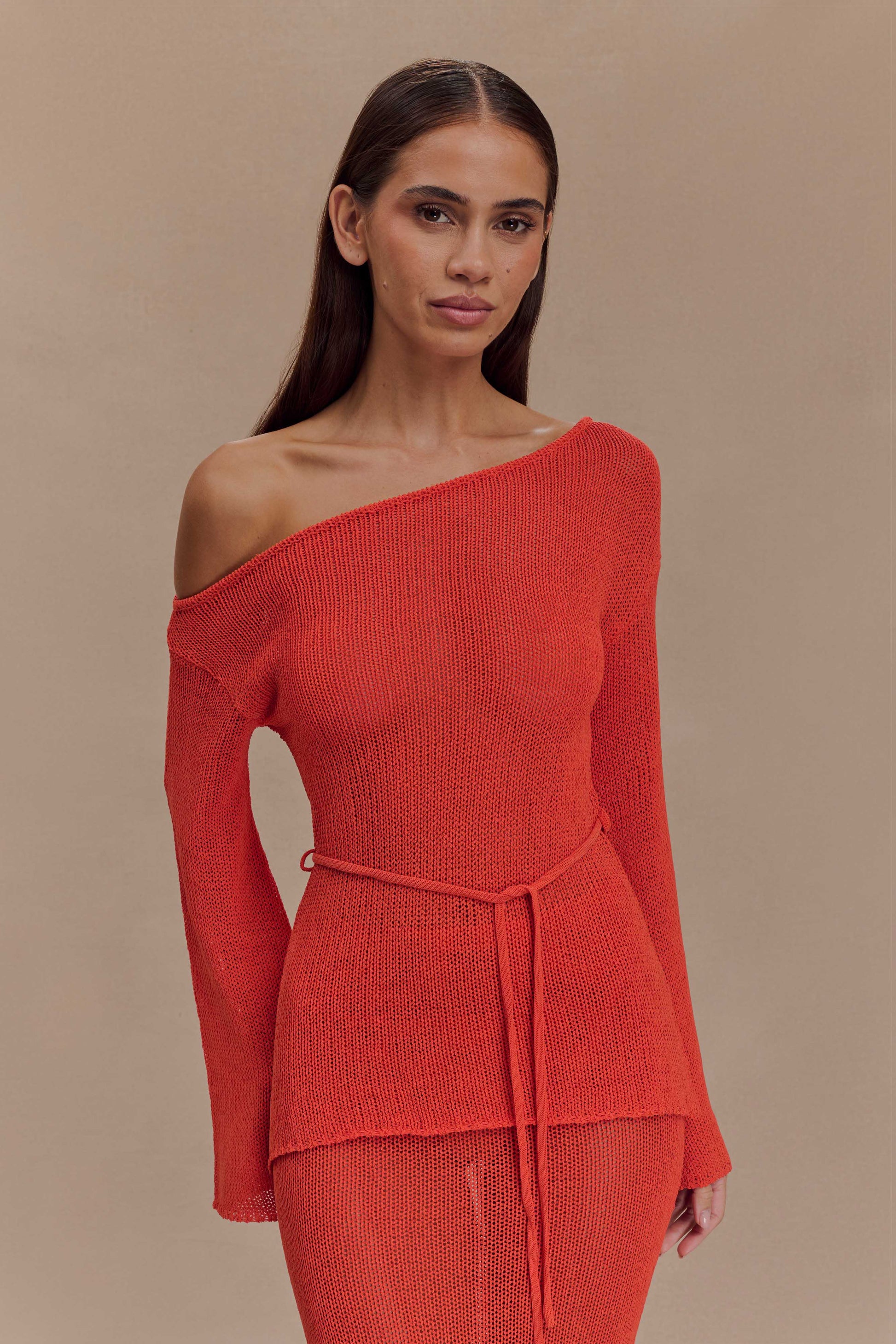 The REAGAN Off Shoulder Knit Top brings effortless elegance to everyday dressing. Featuring an asymmetrical neckline and drop shoulder detail, this long sleeve style drapes beautifully across the body. The removable self belt tie allows for versatile styling—cinch the waist or wear it loose for a relaxed look. Unlined for a soft, lightweight feel, this top pairs perfectly with the Reagan Knit Maxi Skirt for a coordinated set that’s equal parts cosy and chic.
