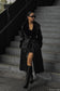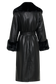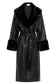 Oversized Pu Trench Coat With Fur Trim - Black