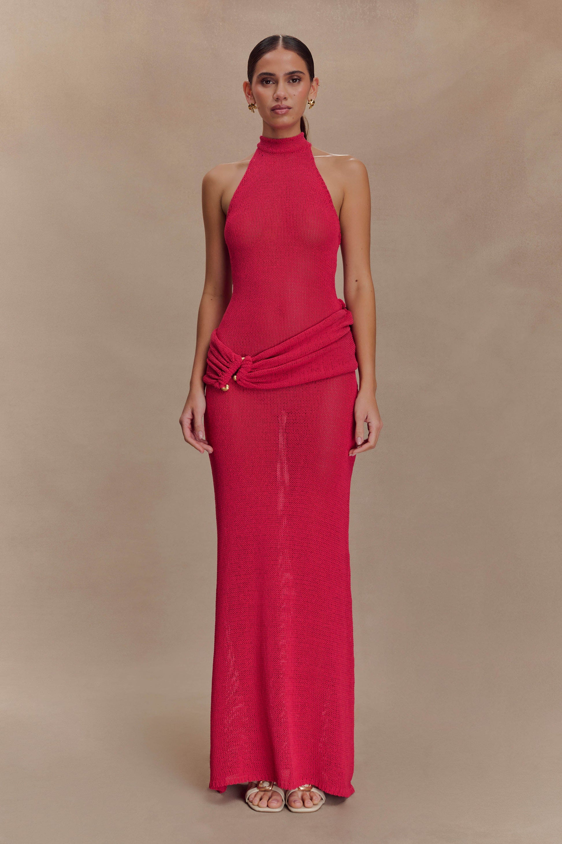 The REECE Halter Knit Maxi Dress is a modern silhouette designed with effortless elegance in mind. Featuring a halter neckline and open back, this unlined knit dress contours the body with ease while a ruched hip overlay adds soft definition and movement. Finished with custom hardware and a floor-grazing hem, this dress is perfect for warm-weather evenings, coastal escapes, or any occasion that calls for sleek, understated impact.