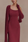 Detachable Cape Jersey Maxi Dress - Wine