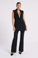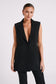 ROBIN is a sleeveless suiting vest with a double-notched collared neckline and sewn-in shoulder pads. Fully lined with a back clasp, clean seams, and a faux front breast pocket, its structured design complements its relaxed, oversized fit. The deep, plunging neckline and lack of sleeves adds a fresh, fashionable twist to this vest’s timeless cut. It pairs perfectly with loose-fitting trousers–like Jemima Straight Leg Pants and our Zadie Double Teardrop Earrings.
