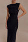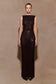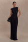 The SAMARA Sleeveless Diamante Maxi Dress is designed to command attention with understated glamour. Featuring a high neckline and subtle cap sleeves, it creates a sleek, refined frame at the front. The fitted bodice contours the figure, while an open back with gathered detailing introduces fluid movement and a confident reveal. Finished with diamante embellishment that catches the light beautifully and fully lined for a smooth, supportive fit, this maxi-length silhouette delivers elevated eveningwear with a modern edge.