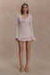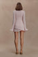 The SAMIRA Knit Long Sleeve Mini Dress brings a romantic, handcrafted feel to a modern, feminine silhouette. Designed with a flattering V neckline and long sleeves, this dress features wave-edged sleeve and hem detailing that adds fluid movement to the body. Intricate wave panels with floral accents create subtle texture throughout, while the fluted hemline offers a playful, elevated finish. Crafted from a lightweight knit and left unlined for natural drape, this dress pairs softness with sculptural appeal.