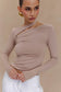 Modal Long Sleeve Top With Cut Out - Mushroom