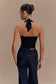 Elevate your wardrobe with the SELENA Scalloped Jersey Halter Top, a chic blend of modern sophistication and playful charm. Featuring a flattering halter neckline with adjustable ties, this top offers a customisable fit that highlights your shoulders and décolletage. The scalloped neckline detail adds a touch of elegance, while the cropped length keeps it fresh and contemporary. Perfect for pairing with high-waisted jeans, skirts, or shorts, this top is a versatile piece that transitions seamlessly from casual outings to stylish evenings.