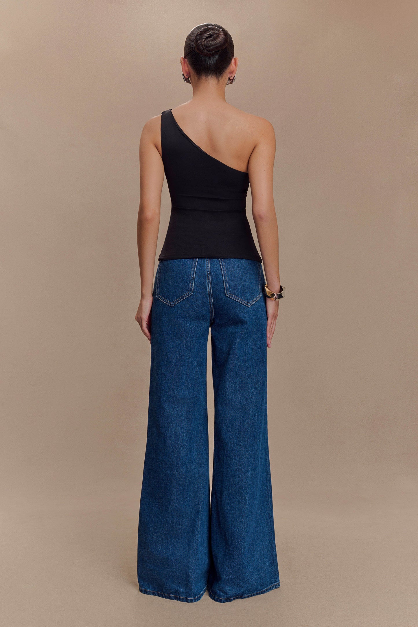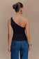 Sera One Shoulder Recycled Nylon Top With Drape - Black