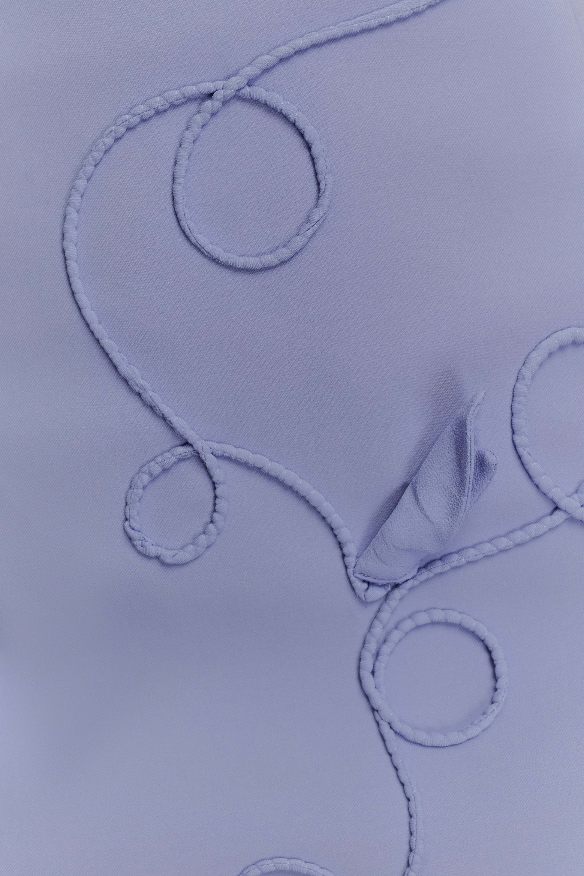 The SKYLER Suiting Embroidered Mini Dress is where structured suiting meets delicate detailing. Designed with a classic crew neckline and mini length, this refined silhouette is elevated by a corded floral embroidery that adds texture and charm. Fully lined for comfort and finished with an invisible zip, this dress also features a detachable neck scarf for added styling versatility. It’s your go-to for daytime polish or elevated events.