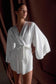The STERLING Satin Bridal Robe is a timeless blend of sophistication and luxury. Designed with a soft V-neckline and a chic crossover front, this robe drapes beautifully over the body for an effortlessly refined look. The mid-length sleeves add a delicate touch, while the waist tie cinches for a flattering, adjustable fit. Crafted from lustrous satin and left unlined for a lightweight feel, this robe is the perfect bridal getting-ready piece, adding a touch of elegance to your most special moments.